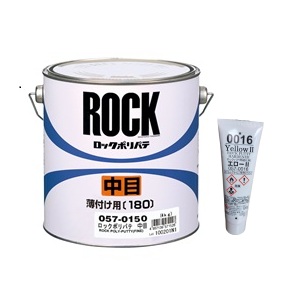 ロックポリパテシリーズの中目は、ヘラ作業性・乾燥性・研磨作業性に優れた鉄鋼板用(高張力鋼板および防錆鋼板には対応していません)のポリエステル樹脂パテです。 自然乾燥、強制乾燥(加熱温度は60℃以下)ともに対応可能で作業条件に合わせた乾燥方法が選択できます。 パテ付け後、即時強制乾燥することで大幅な時間短縮が可能です。 最大膜厚は3mm以内です。 別途ロックパテ用硬化剤エローU・エロー150または硬化剤MEKPOが必要です。