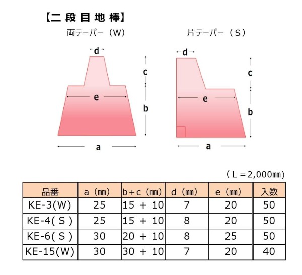 PS発泡二段目地棒(KE-3W×2m),1箱50本入