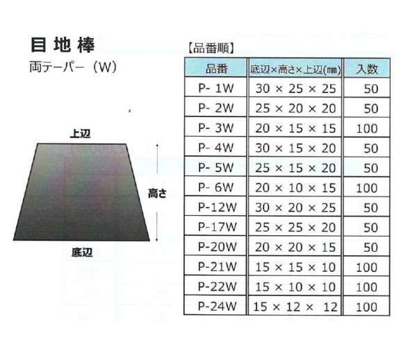 パワーテーパー目地棒(P-20W×2m),1箱50本入